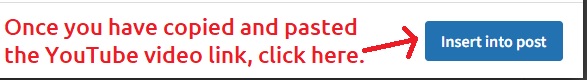 Copy the YouTube video link and paste it into the URL box below. Then, click the “Insert into Post” link located in the bottom right corner.