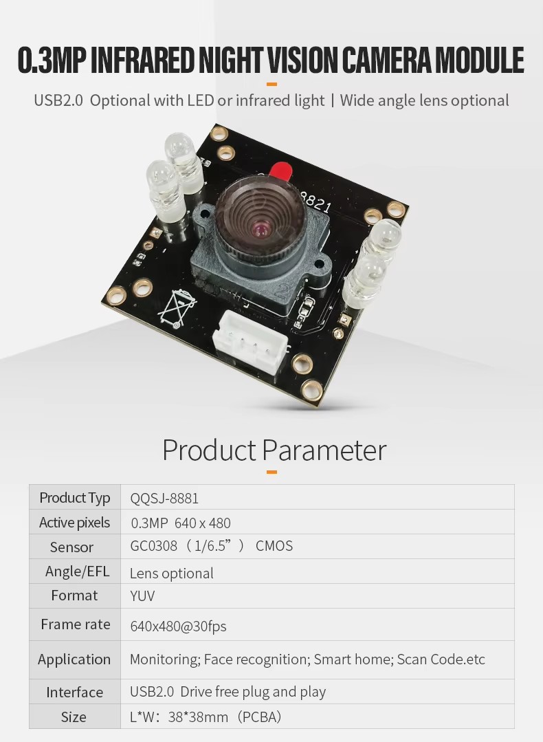 DGZX 0.3MP Wide Angle Low-light Night Vision USB Camera Module