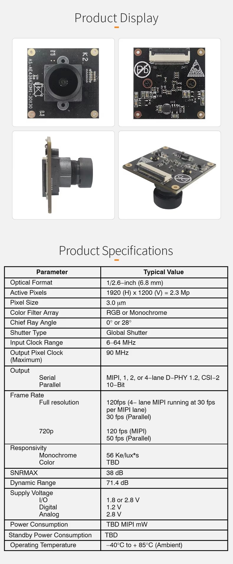 - Active pixels: 2.3MP 1920(H)x1200(V)