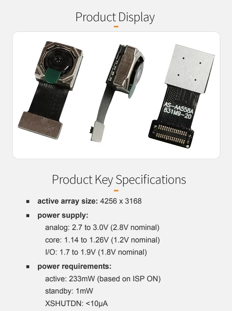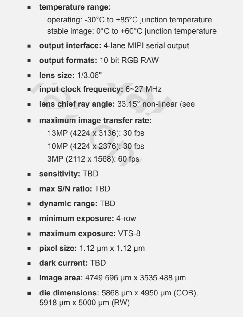 - Active pixels: 13MP 4224(H)x3136 (V)