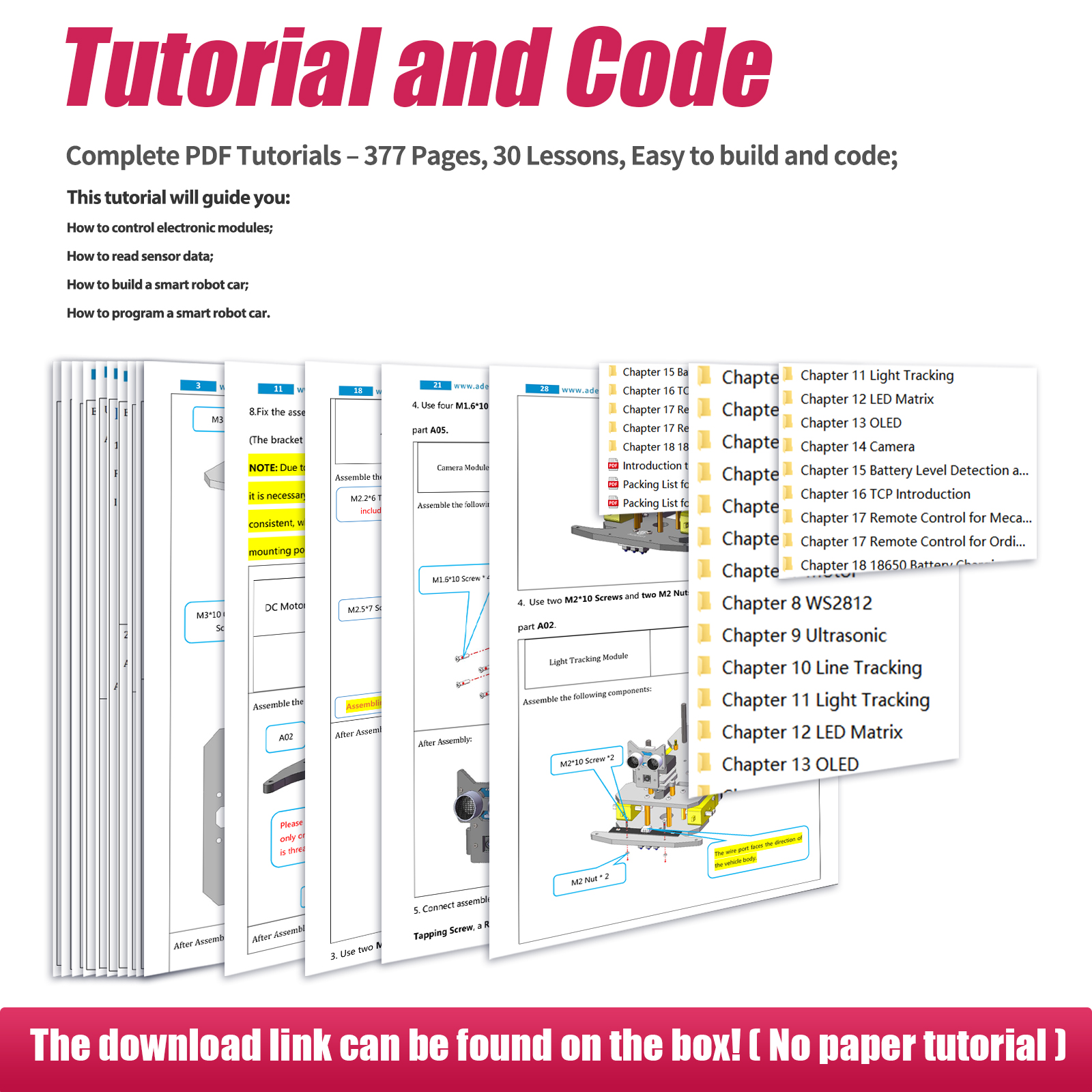 - Easy to Assemble and Build – Detailed tutorials (370 Pages, 30 Lessons) and complete code are provided. The download link can be found on the card in the box(Paper tutorials are NOT available as the tutorials are updated frequently).