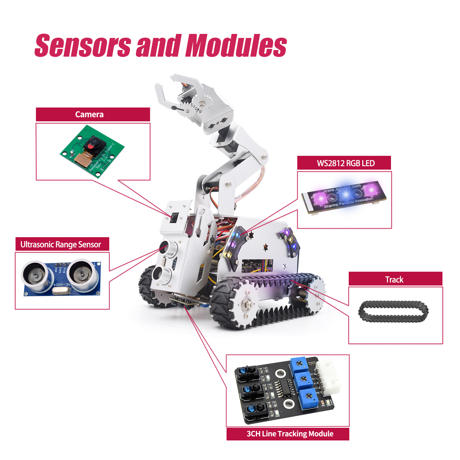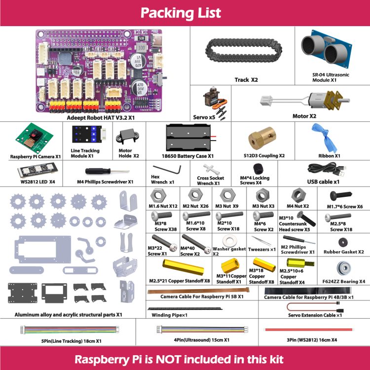 - DIY Assembly Kit: Designed for AI & STEM education. Made of aluminum alloy. Compatible with Raspberry Pi 5/4 B/3/3B/3 B+ (Raspberry Pi NOT Included!). Intermediate-level project(1.5-3 hours assembly). Recommended for ages 16+.