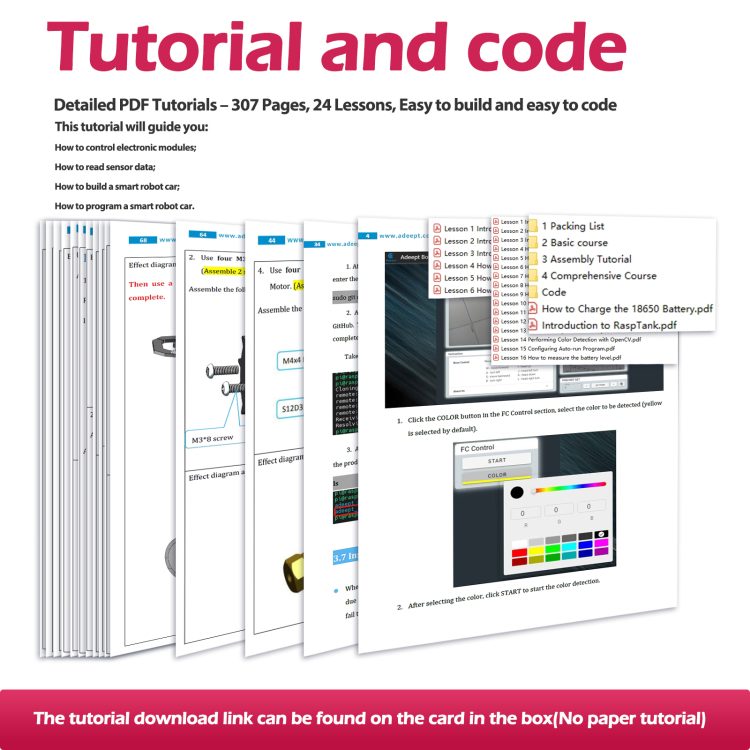 - 300+ pages full-color manual(PDF, download from Adeept website)