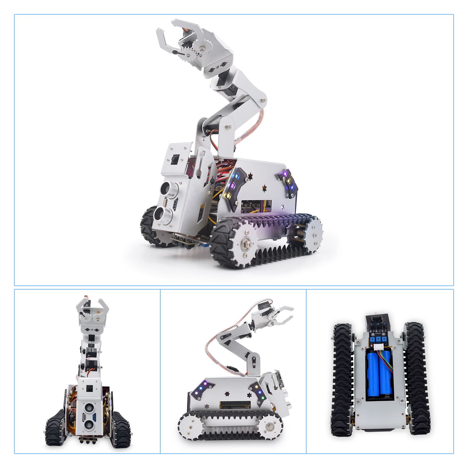 - 4-DOF robotic arm & Aluminum alloy tracked chassis kit