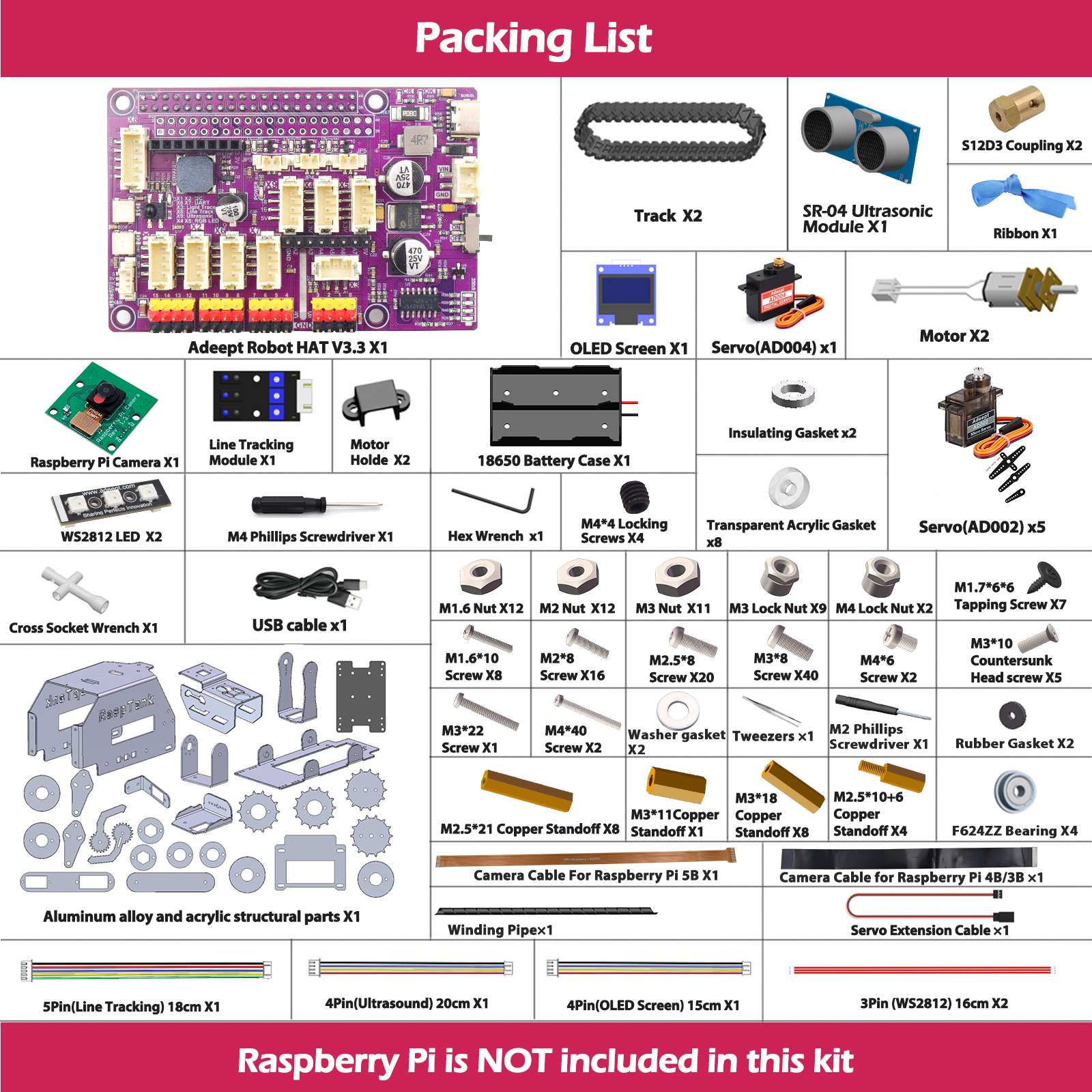 - DIY Assembly Kit: Designed for AI & STEM education. Made of aluminum alloy. Compatible with Raspberry Pi 5/4B/3B/3B+(Raspberry Pi NOT Included​!). Intermediate-level project(1.5-3 hours assembly). Recommended for ages 16+.