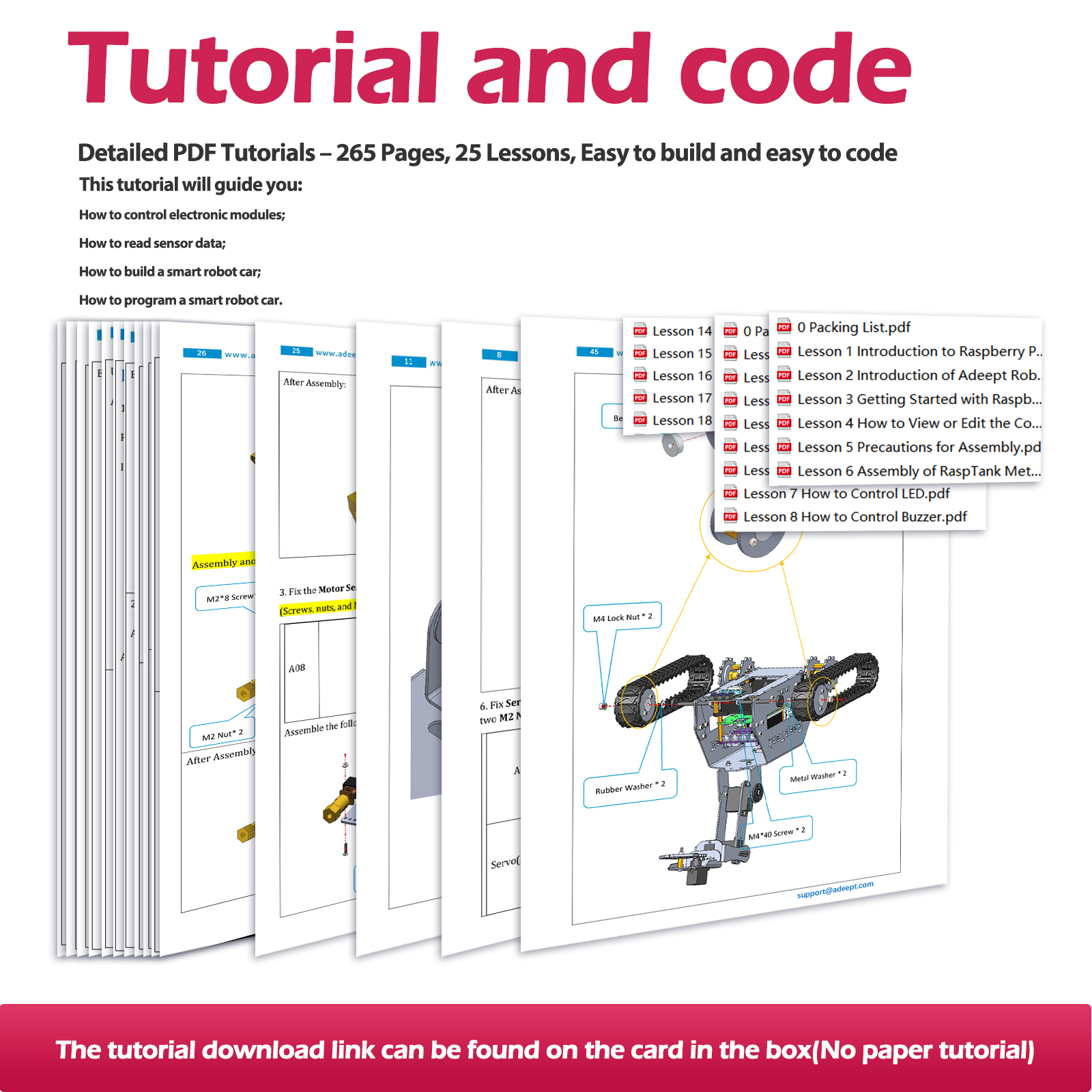 - 300+ pages full-color manual(PDF, download from Adeept website)