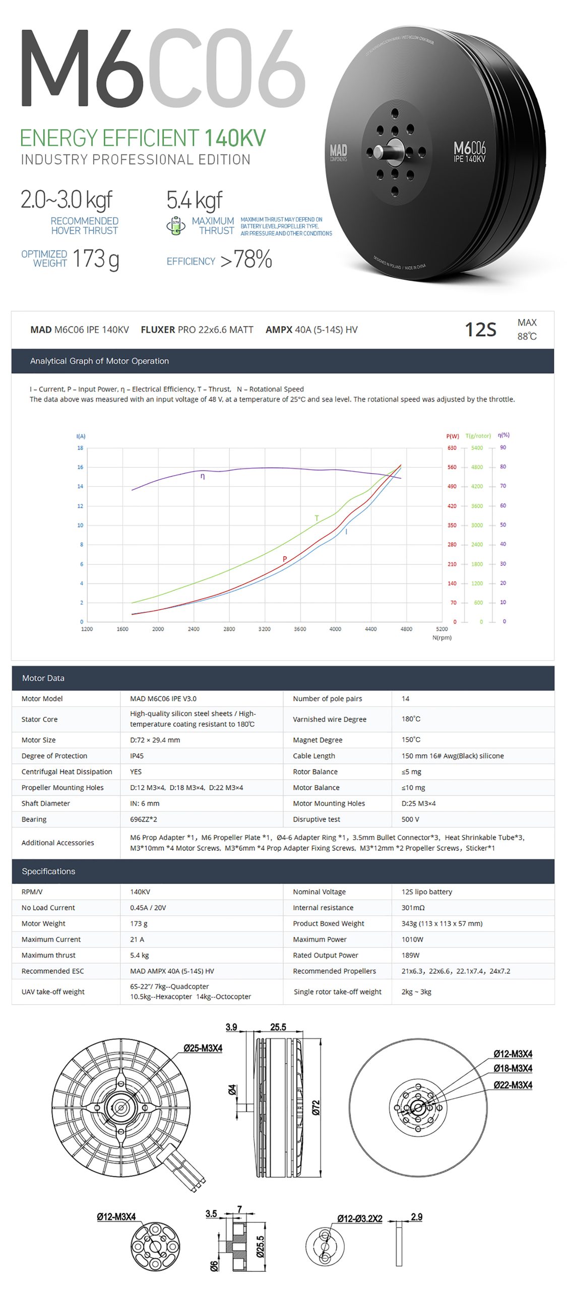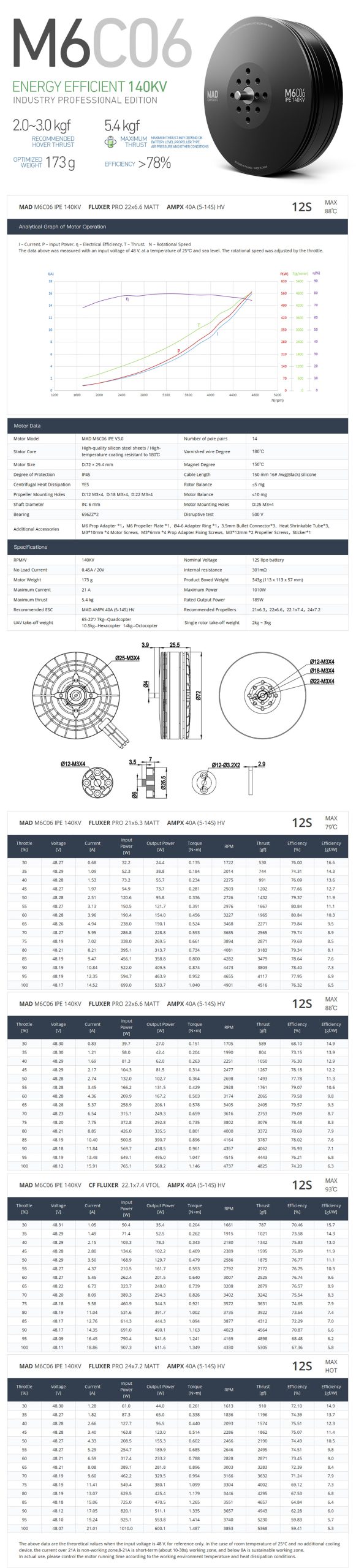 - Supports maximum thrust up to 5.4 kg per axis