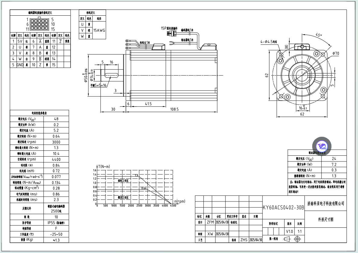 BLDC Servo Motor with Encoder and Brake for AGV, RGV and Robots – 60mm Flange 48VDC 200W 3000RPM 0.64N.m