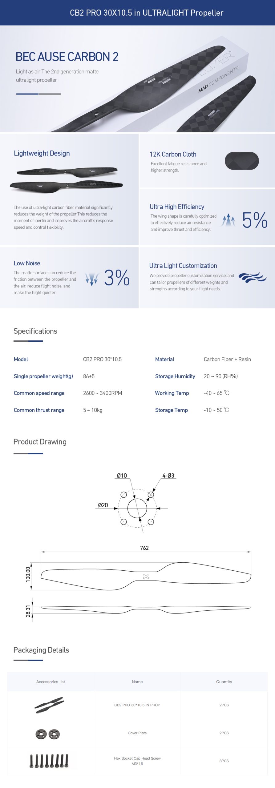 CB2 PRO 30×10.5 inch Carbon Fiber Propeller