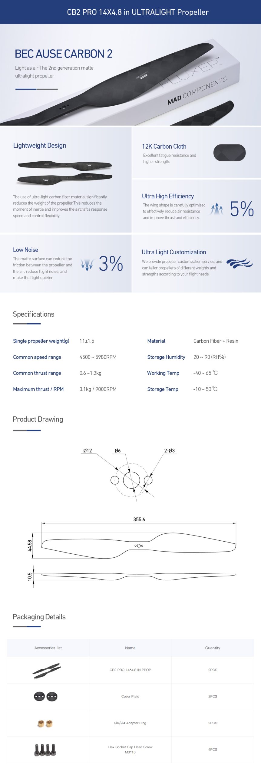 CB2 PRO 14×4.8 inch Carbon Fiber Propeller