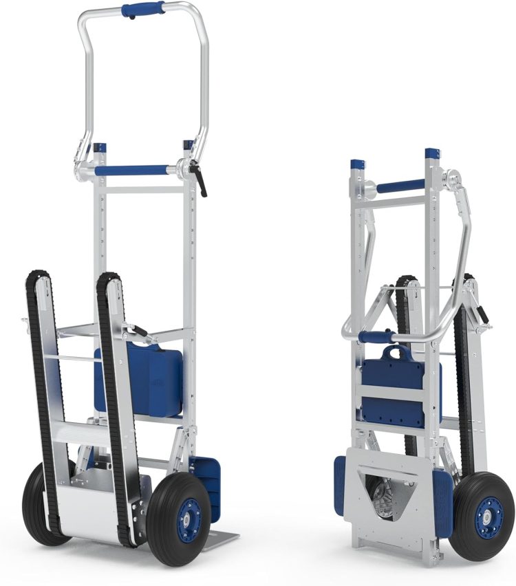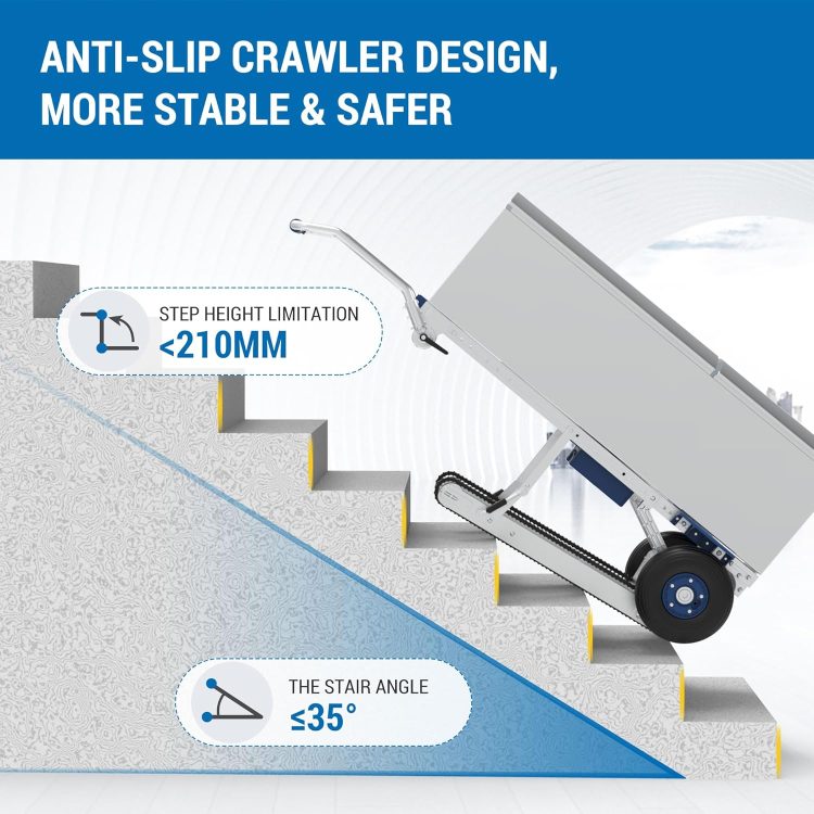 Caterpillar Track Drive and Non-Slip Wheels—XSTO powered stair climbing cart with caterpillar track drive, rubber crawler track, Anti-slipping, and long lifespan. 10 “Pneumatic R” ber Tire, Good Shock Absorption, safe, and durable.