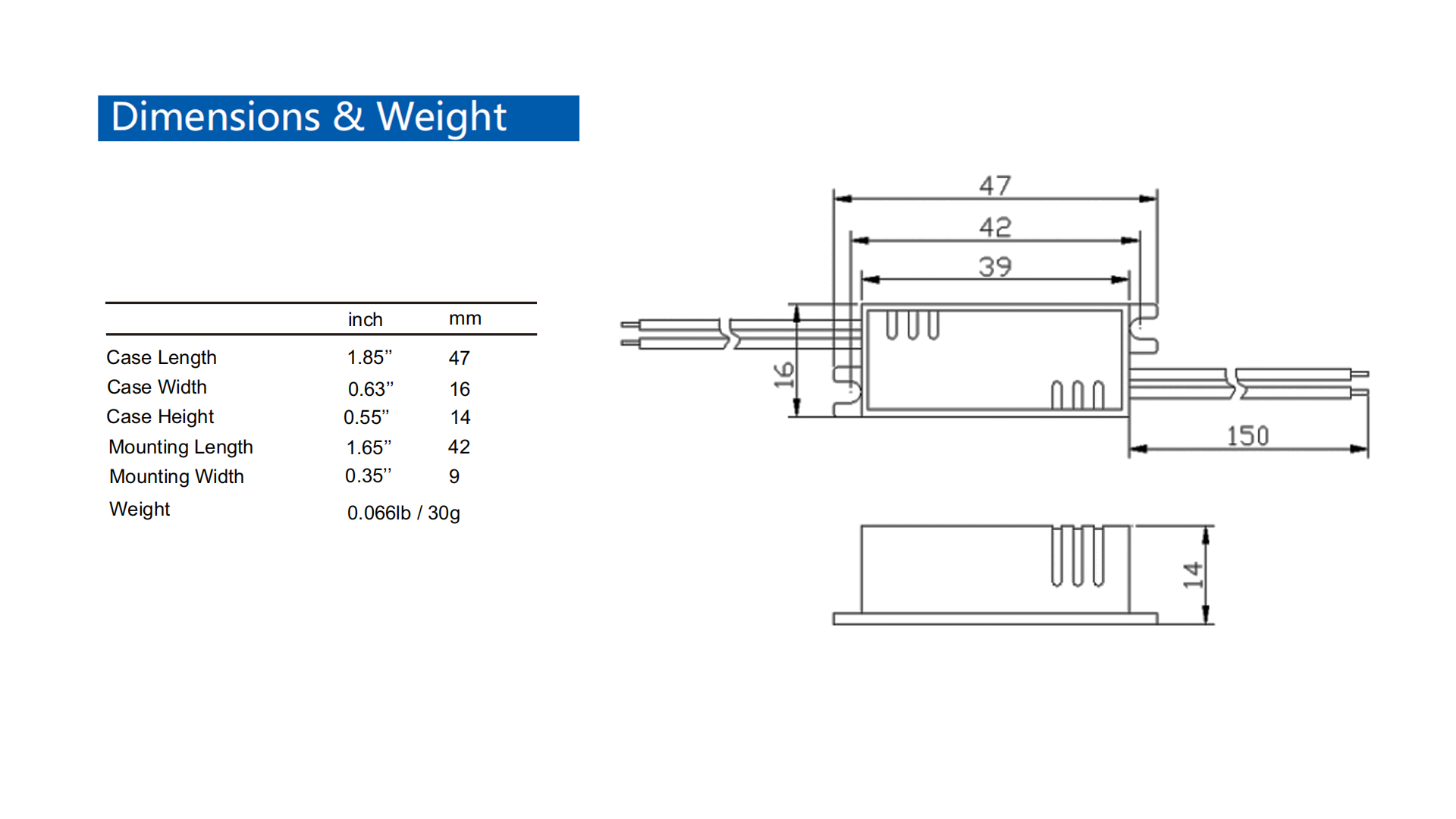 - Compact physique and thin profile, making it easy to fit into lamp casings, wall switch boxes, etc.