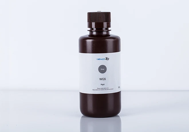LCD rigid photosensitive resin WG5 is a solvent-free, low-viscosity, high-precision photocurable 3D printing resin. Suitable for laser and LED light sources. It can be molded in a few seconds under the irradiation of 385 nm and 405 nm light sources. The photosensitive resin mixture formula is optimized to suppress beam penetration and prevent deep curing effectively. The minimum layer thickness of a single exposure can be controlled to 0.025 micrometers. Mm. It could achieve high molding precision, fast curing speed, with low odor and low irritancy. With low exposure, the resin can be quickly cured, resulting in a smooth and delicate appearance. The resin is gray, so it’s suitable for dolls and human models.