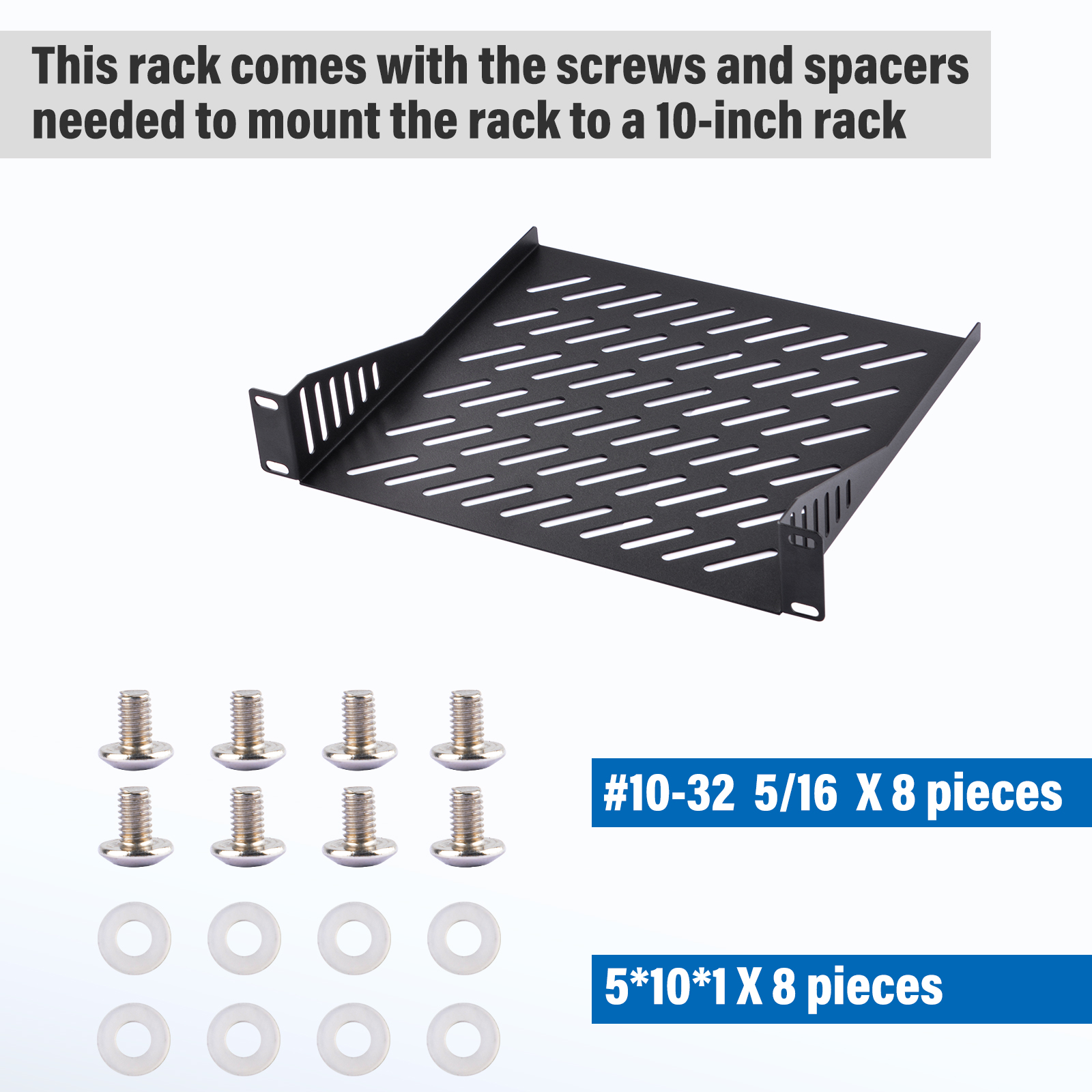 - This rack comes with the screws and spacers needed to mount the rack to a 10-inch rack.