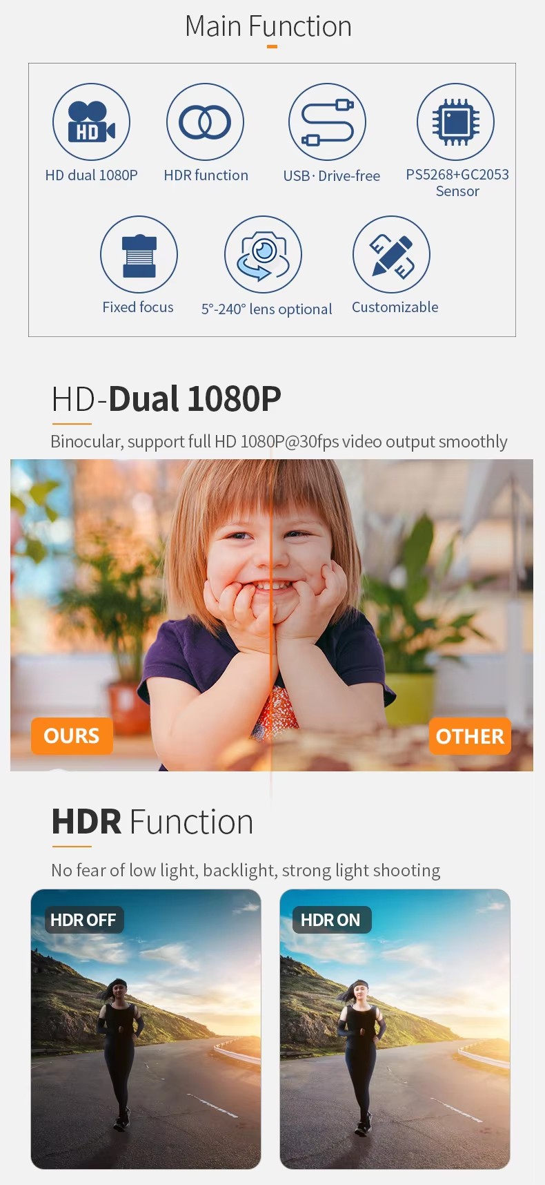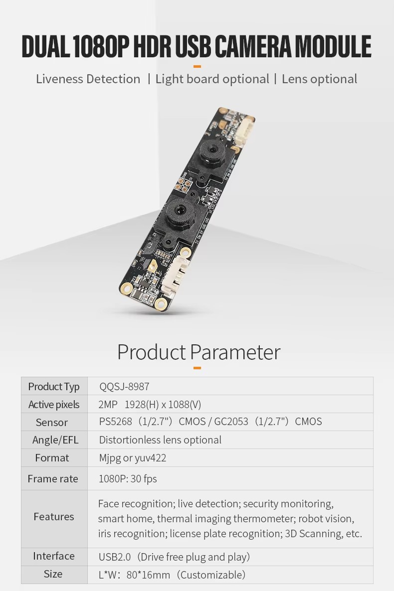 DGZX 2MP 1080P 30fps USB2.0 Binocular Camera Module