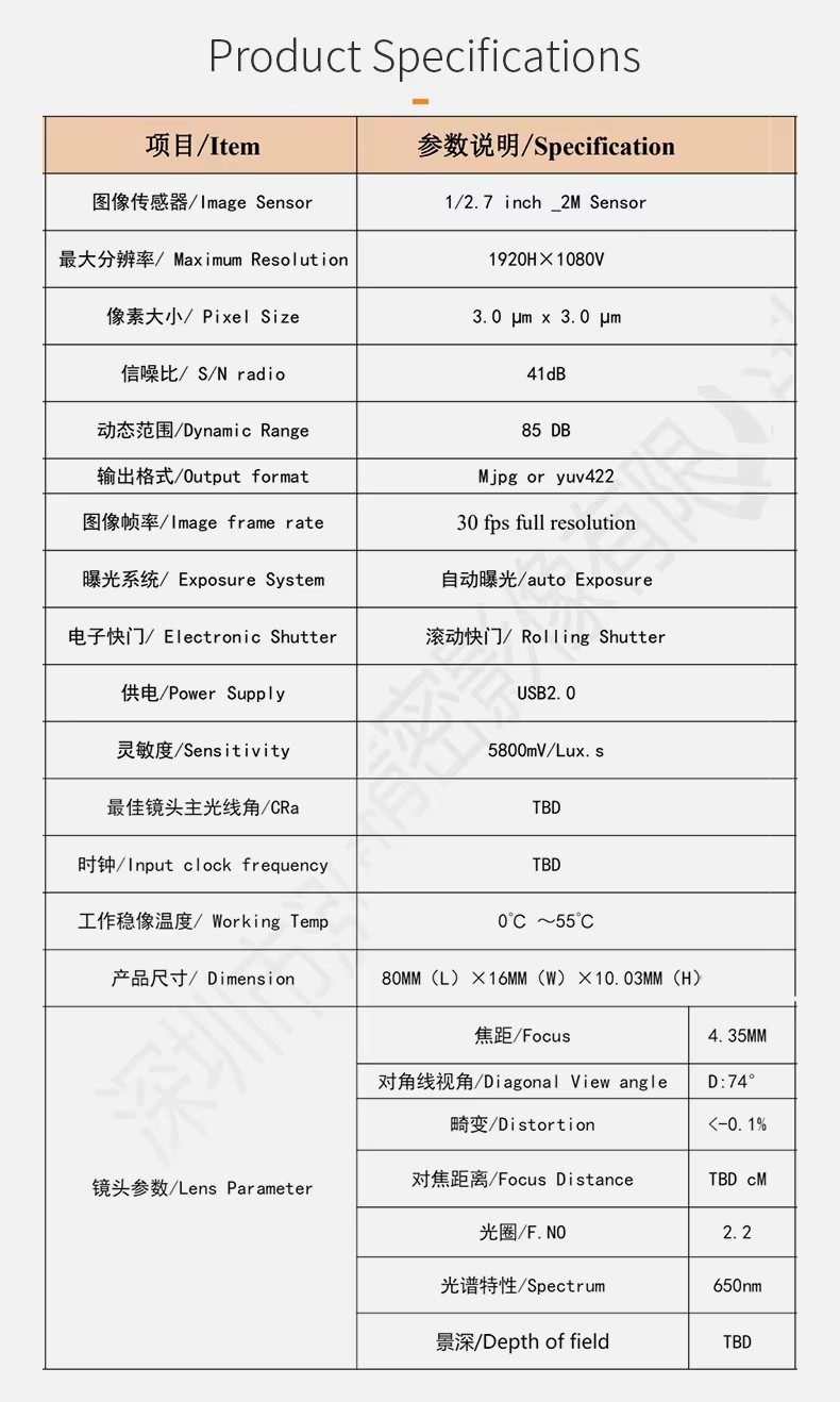 - Sensor: PS5268(1/2.7″)CMOS/GC2053(1/2.7″)CMOS