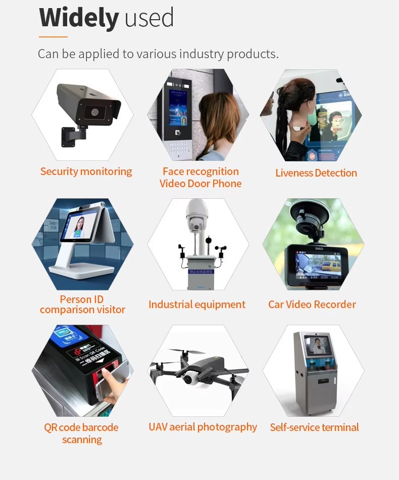 Features: Face recognition, live detection, security monitoring, smart home, thermal imaging thermometer, robot vision, iris recognition, license plate recognition, 3D Scanning, etc.