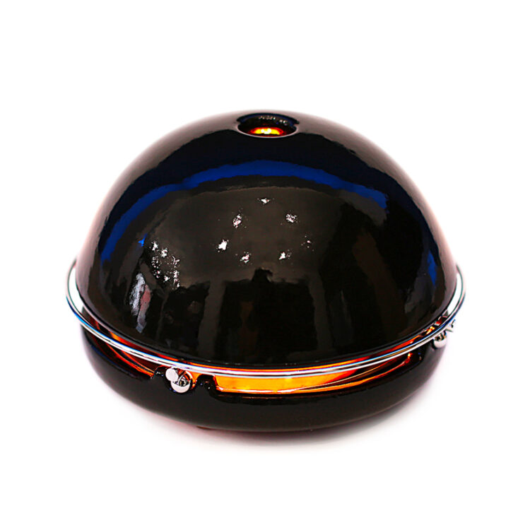 The best Italian artisans make the base and the two domes in a high-heat terracotta called “Terra da Fiamma.” The artisanal production will be wholly MADE IN ITALY, using only the highest quality natural materials. Egloo comprises five elements: the base, the steel plate, the grill, and the two domes. The base offers a space for positioning the steel plate, divided into two parts to facilitate the cleaning: one for the water and the other one, which contains wax and wooden wicks that, once you light them, will warm the domes up. Magnets connect the two parts of the steel plate.
