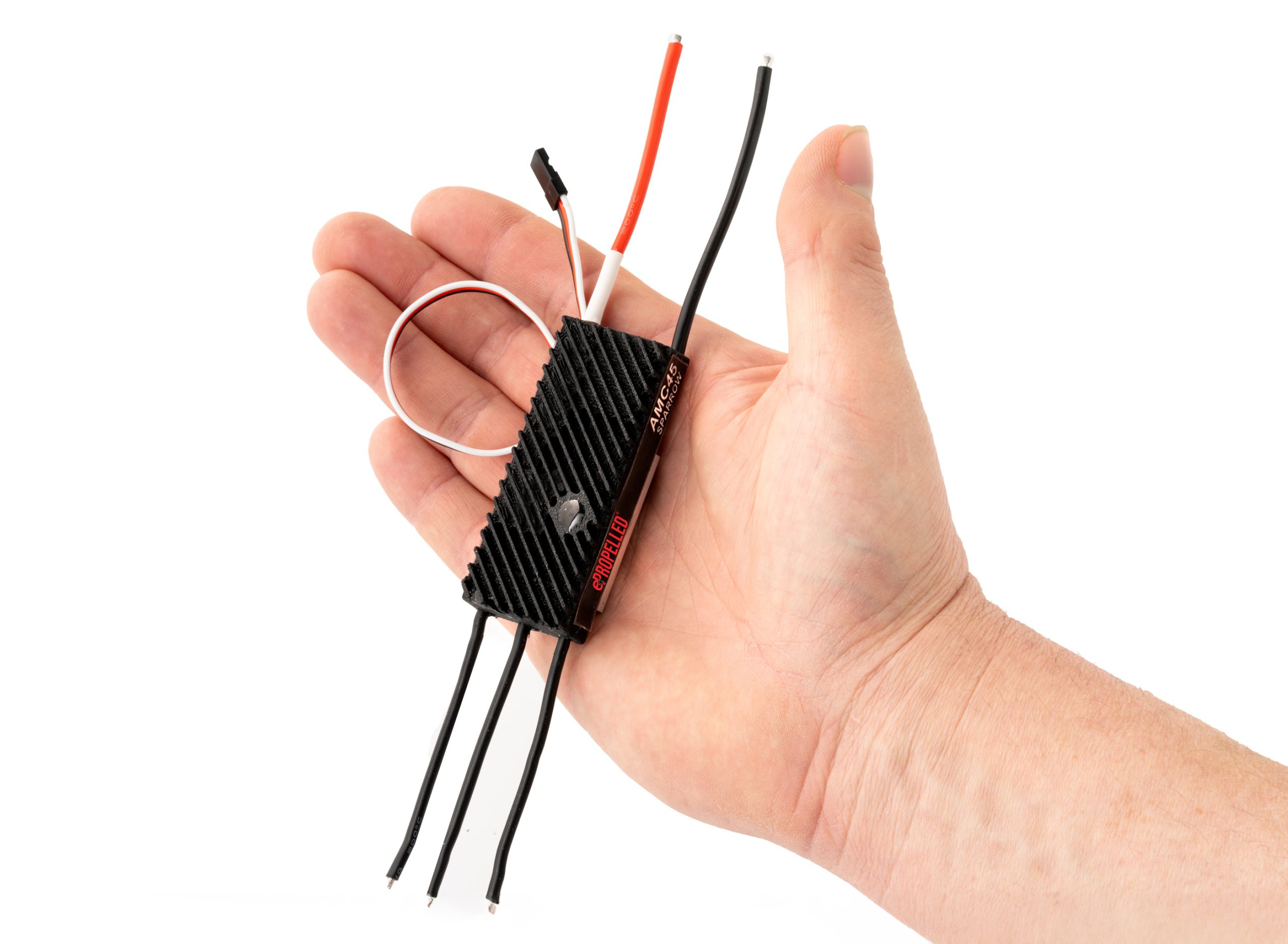 The ePropelled AMC 6S40AW Sparrow Series is designed to pair seamlessly with our lightweight propulsion motors. This ESC converts a DC input voltage into a 3-phase AC output, serving as the vital control unit for electric motors. It features waterproof components with an IP54 Rating, PWM Electronic Controllers for Brushless Motors, and supports 2-6S LiPo batteries.