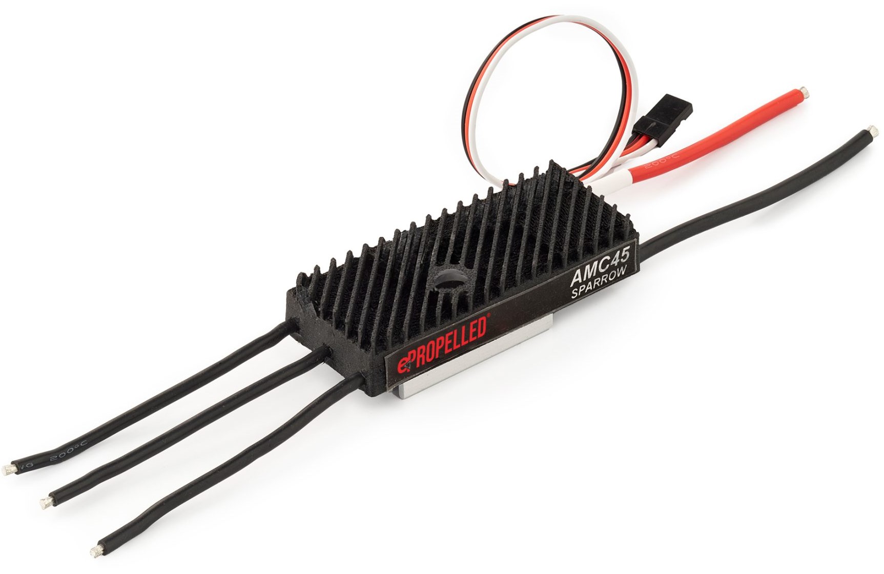 The AMC 6S40AW air motor controller utilizes the standard PWM signal, allowing for a broad range of drone motor compatibility while being optimized to work with the ePropelled Sparrow series, including the APM 4006-Kv380, APM 6007-Kv320, APM 7005-Kv230, and APM90 propulsion units.
