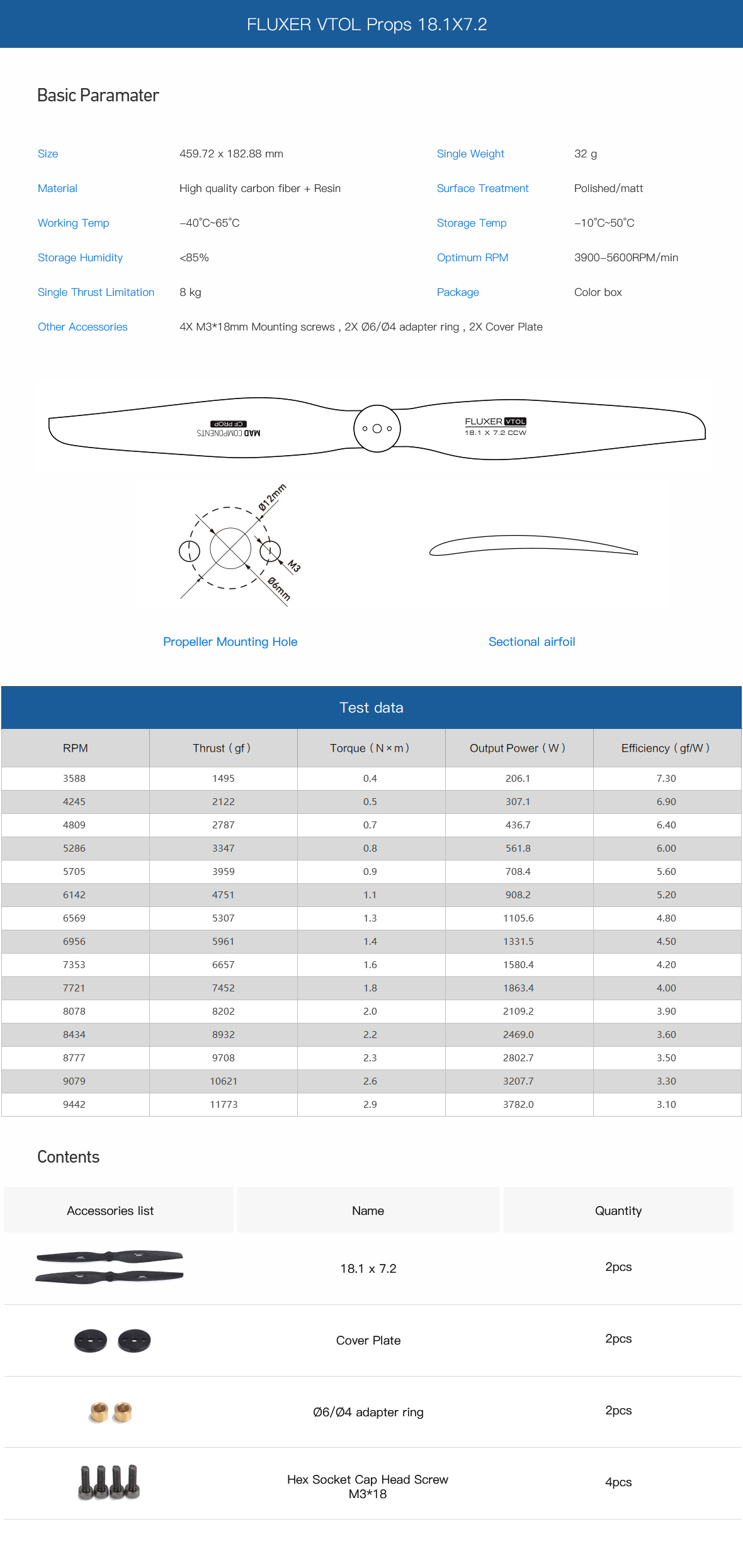 18.1×7.2 Inch FLUXER VTOL Carbon fiber propeller