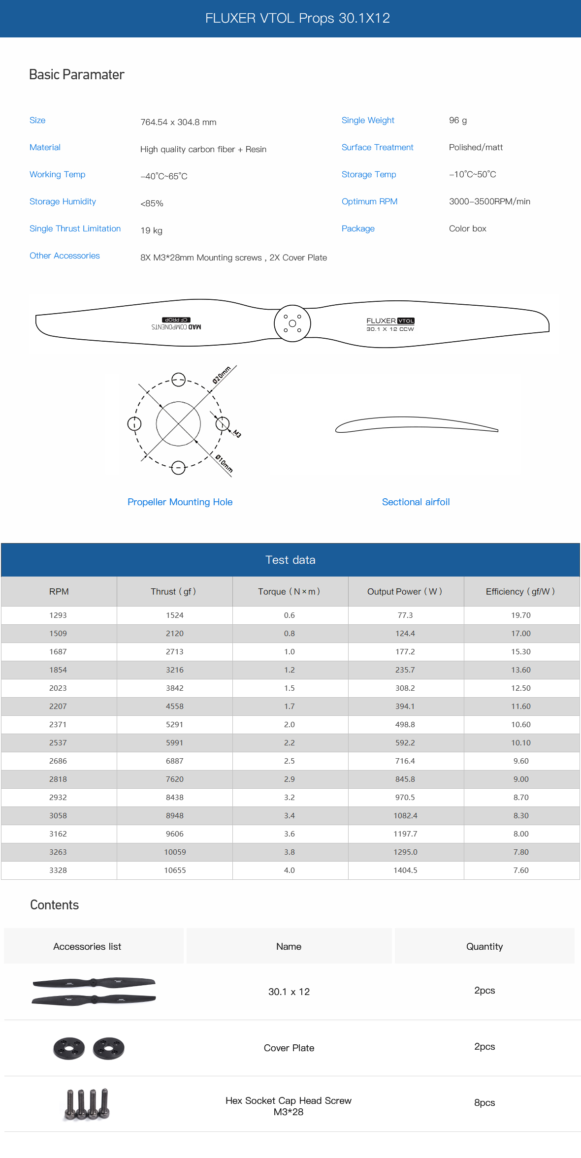 30.1×12 Inch FLUXER VTOL carbon fiber propeller