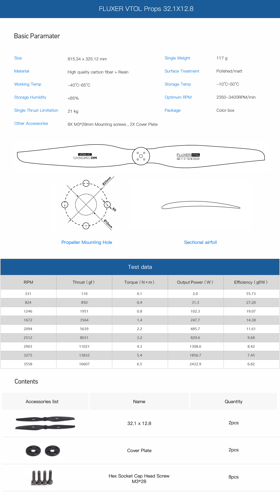 32.1×12.8 inch FLUXER EVTOL carbon fiber Propeller