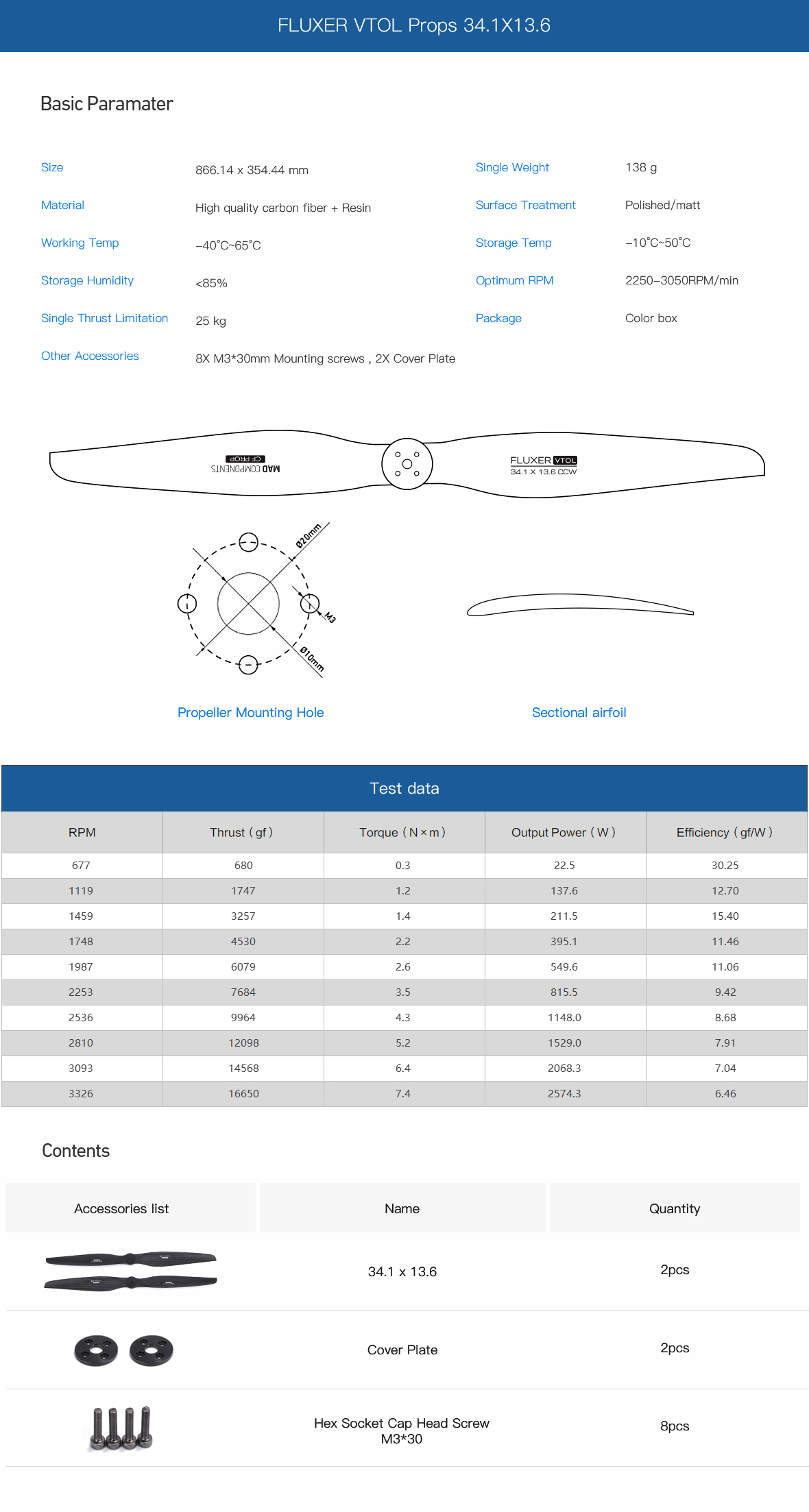 34.1×13.6 inch FLUXER EVTOL carbon fiber Propeller