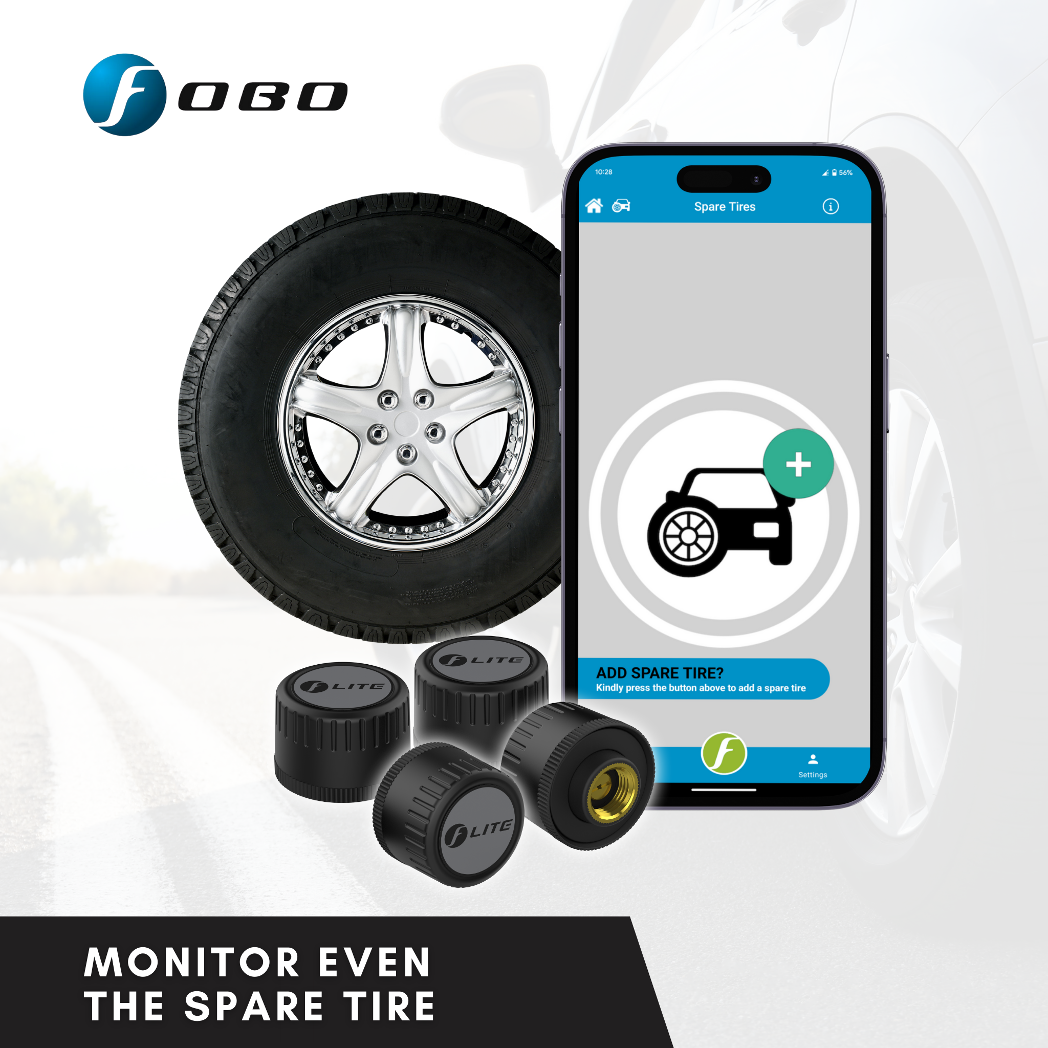 FOBO TIRE LITE – Wireless Tire Pressure Monitoring Systems with Bluetooth 5.0