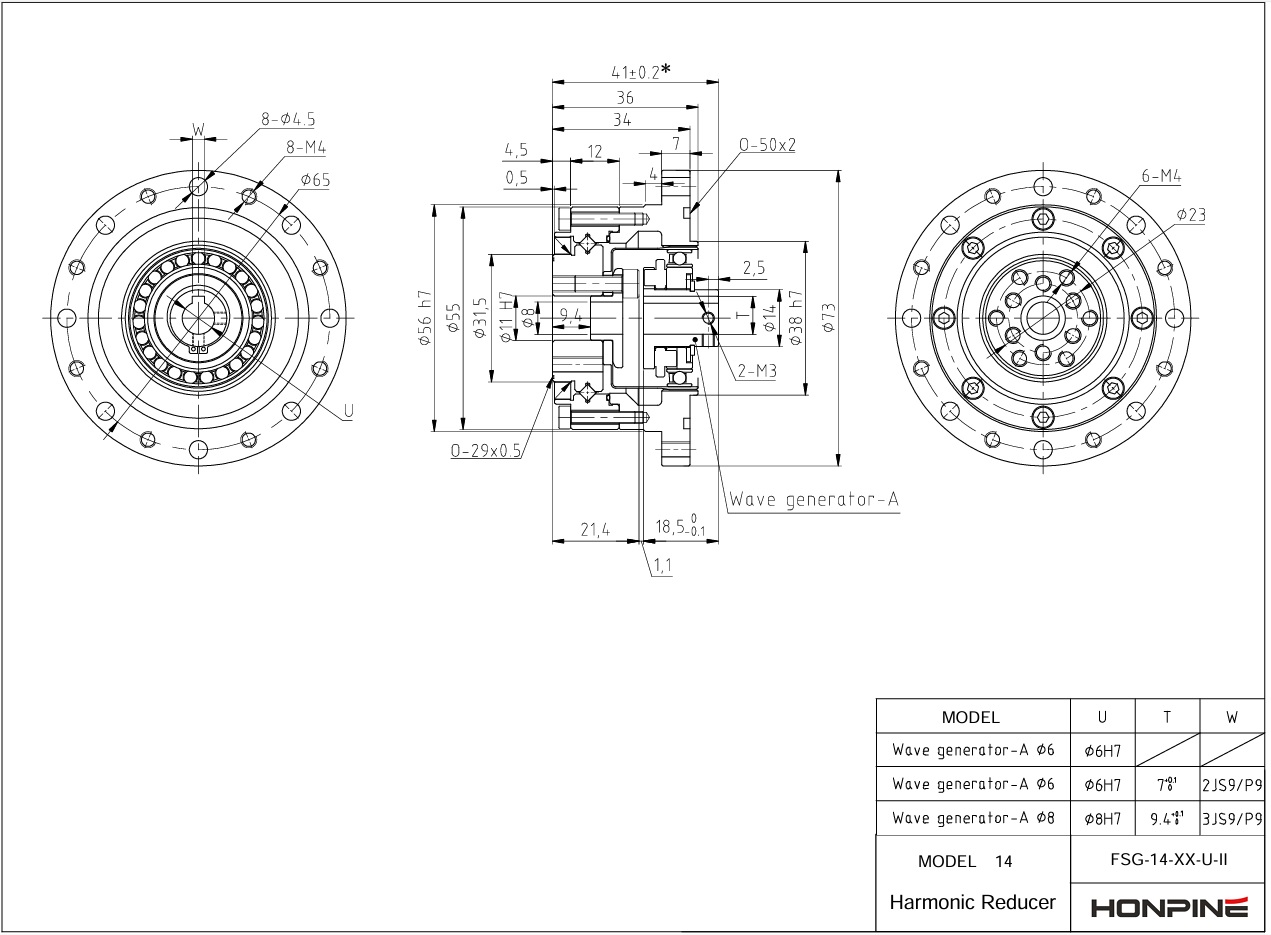 - The wave generator adopts an integrated cam structure, which provides greater tolerance to machining precision of components, enables self-aligning capability, and maintains coaxial alignment within required specifications.