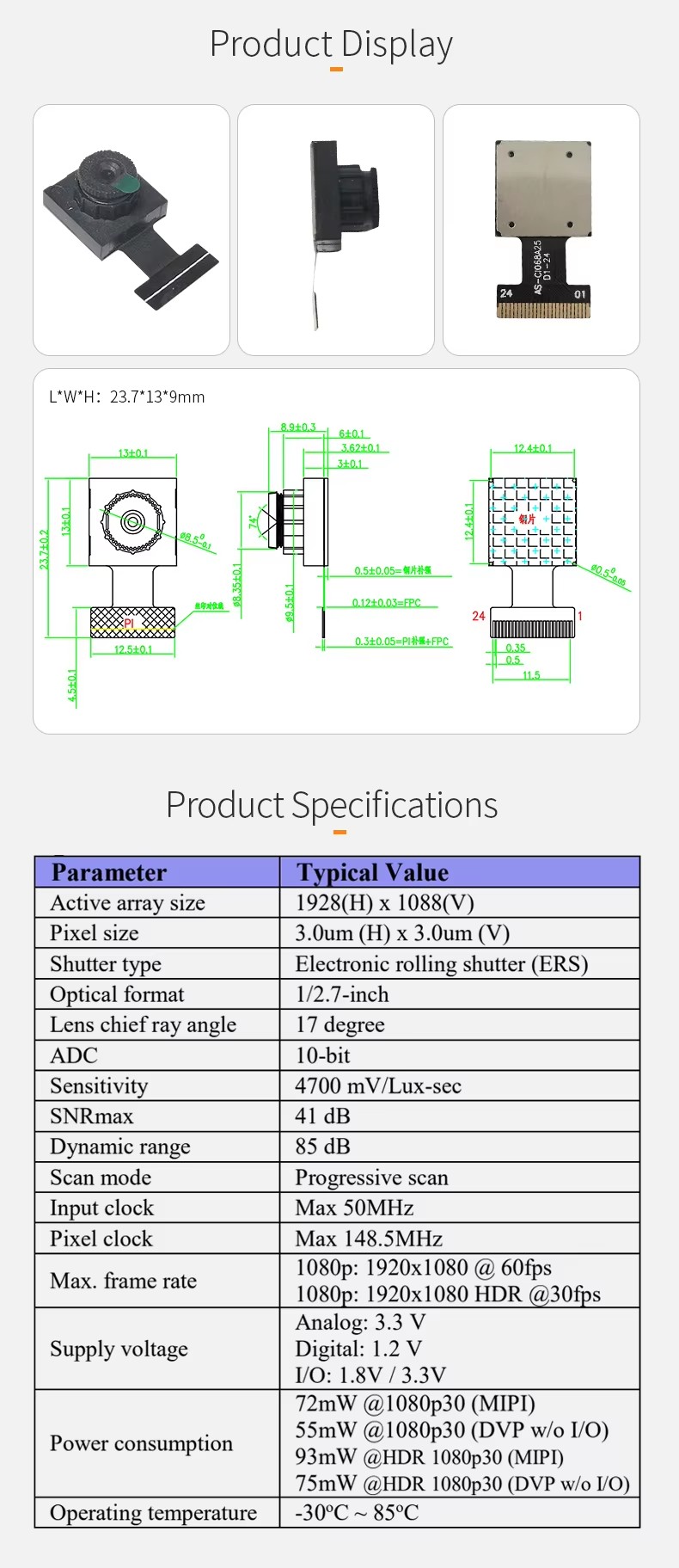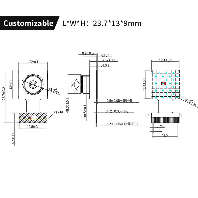 - Interface: 12-bit parallel DVP (Customizable MIPI USB module)