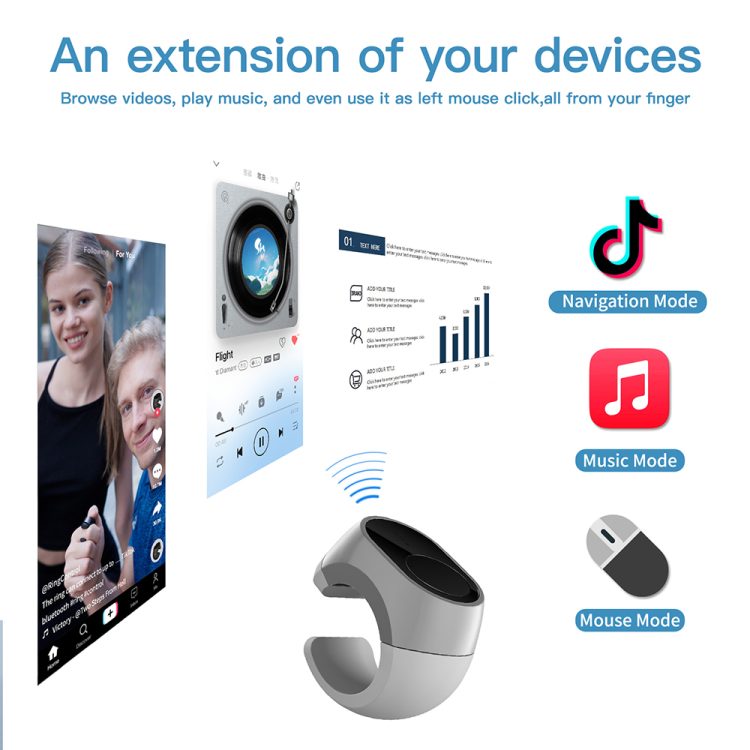 Take command of your digital life with the Ring Control R100, a stylish and compact Bluetooth smart ring that lets you control your devices with just a tap or swipe — anytime, anywhere.