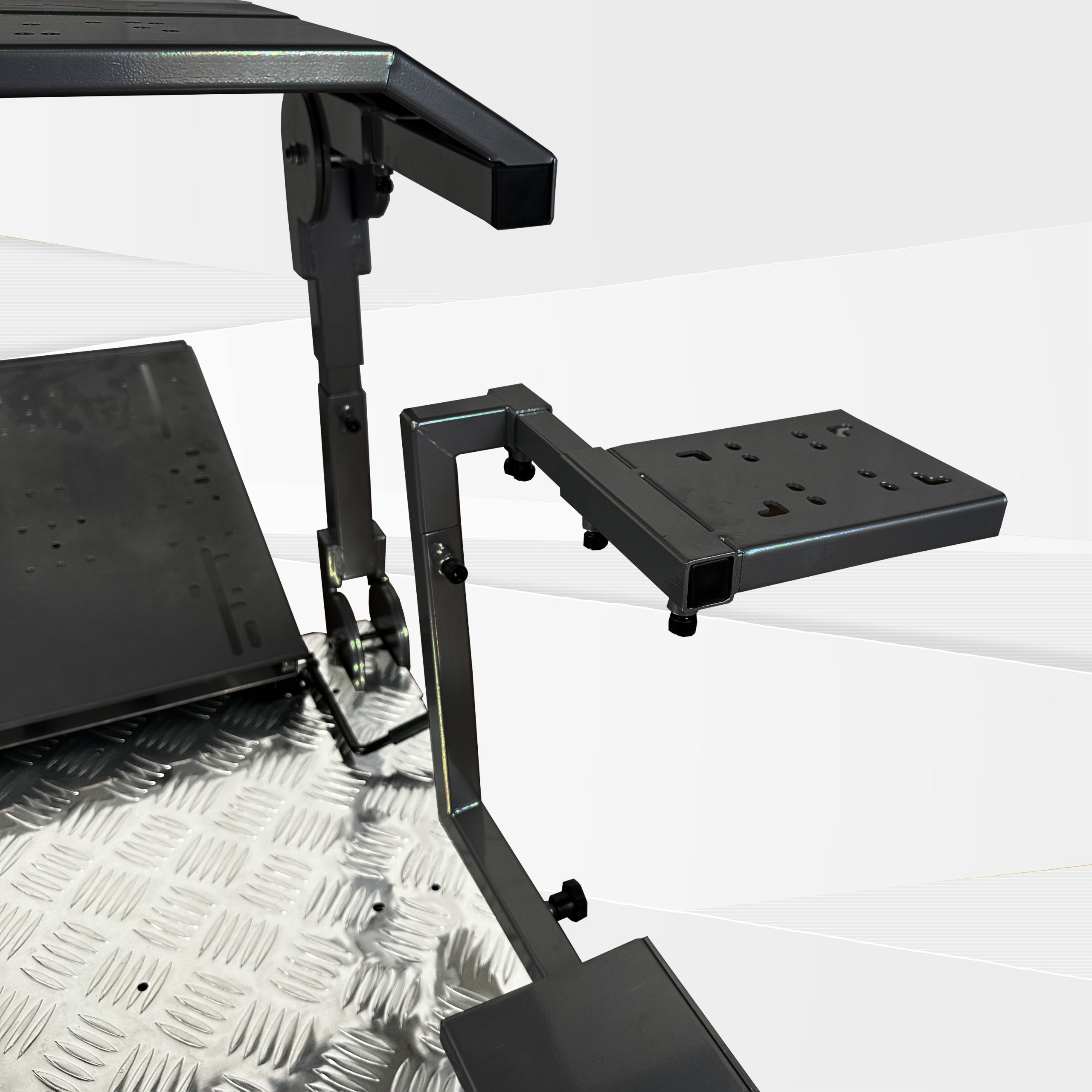 It’s more than just a racing rig—this dual-purpose cockpit includes a swivel-mounted, height-adjustable keyboard and mouse tray, making it easy to convert into a high-efficiency home office setup. Whether racing or working, the modular chassis allows total control over ergonomics.