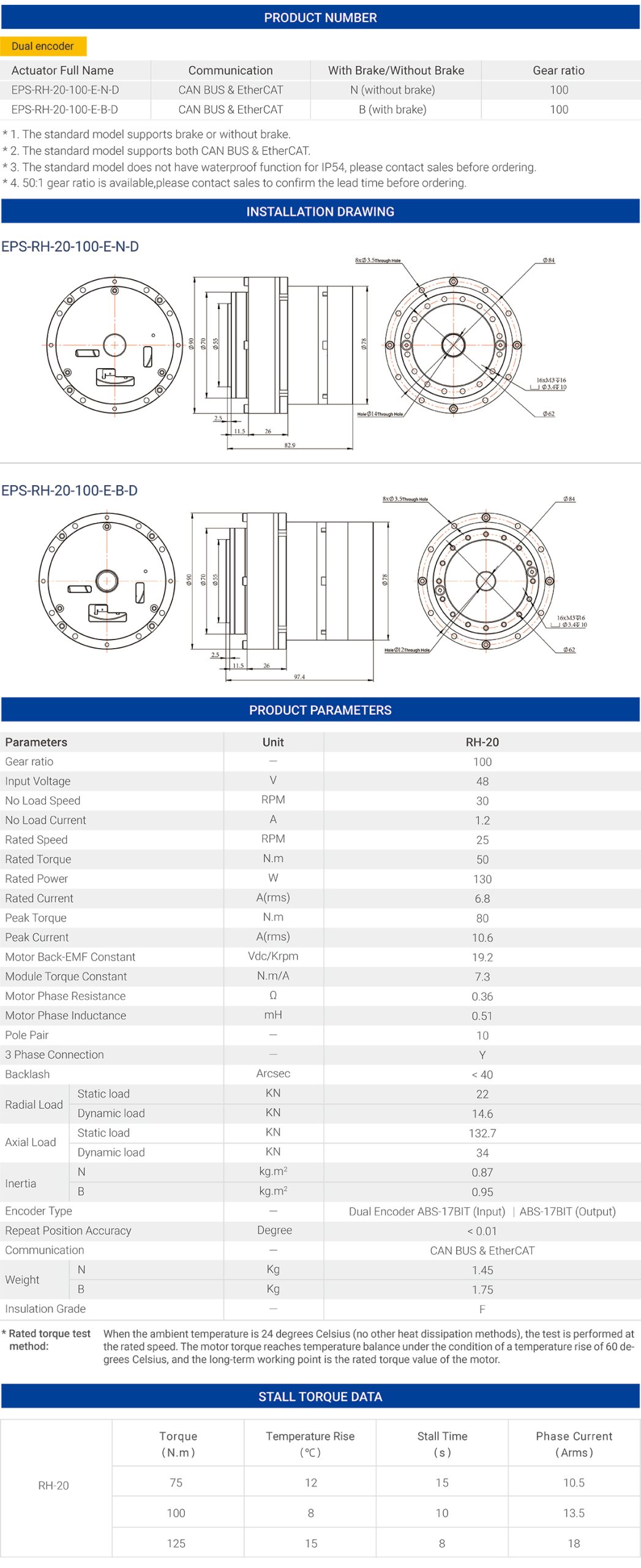 MT RH-20 EtherCAT+CAN Harmonic joint motor Robot joint motor Large hollow design High precision high torque harmonic reducer
