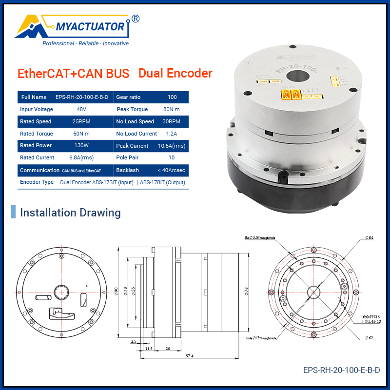 Harmonic Robot Joint Motor with Large Hollow Design and High Precision MT RH-20EtherCAT+CAN