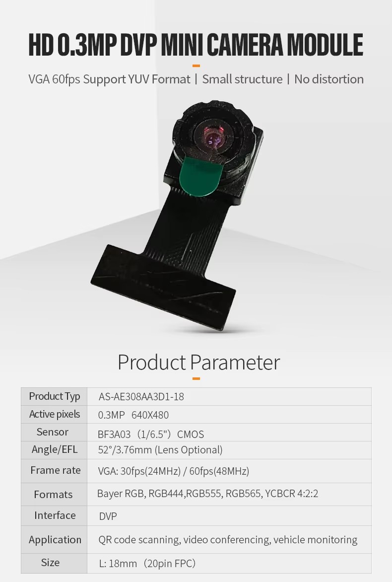 HD 0.3MP DVP Mini Camera Module