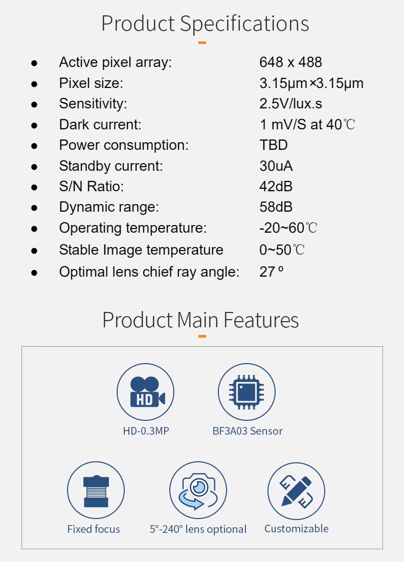 - Sensor: BF3A03(1/6.5″)CMOS