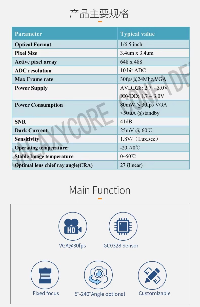 - Format: YCbCr4:2:2,RGB565, Raw Bayer