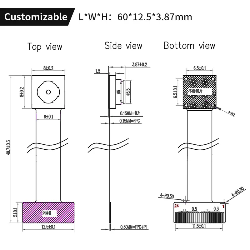 - Angle/EFL: 52°/2.5mm(Lens optional)