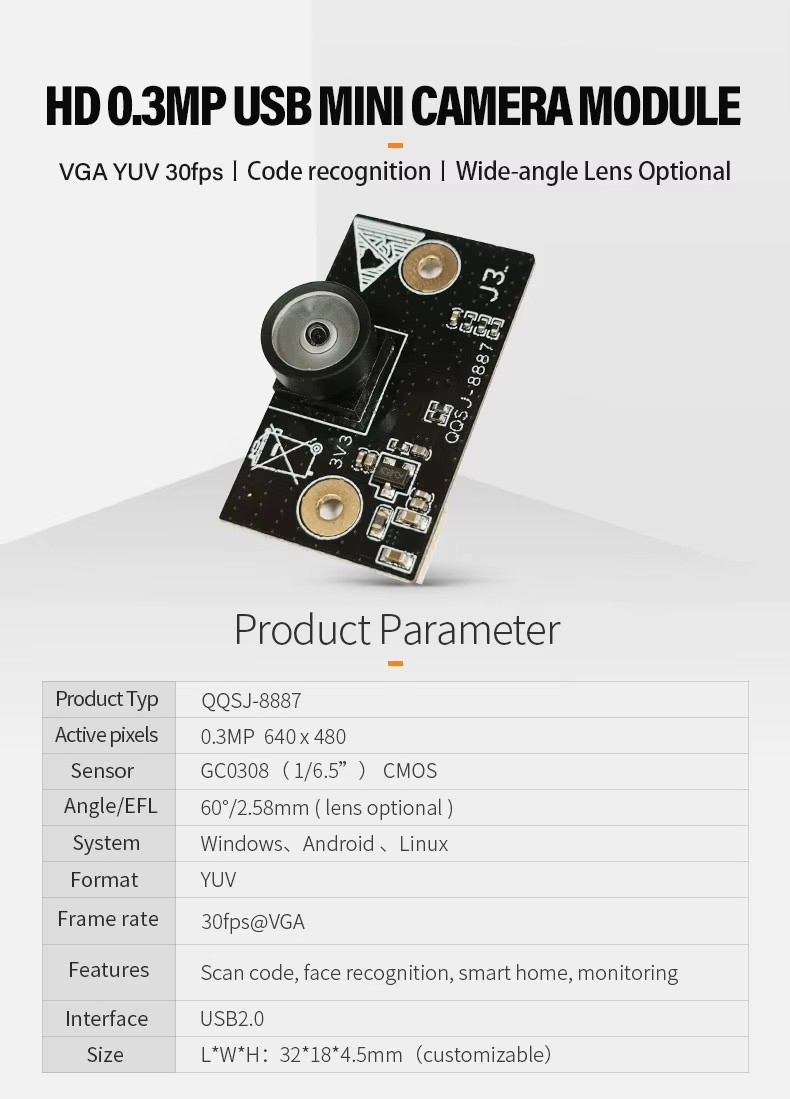 • Angle/EFL: 60°/2.58mm ( lens optional )