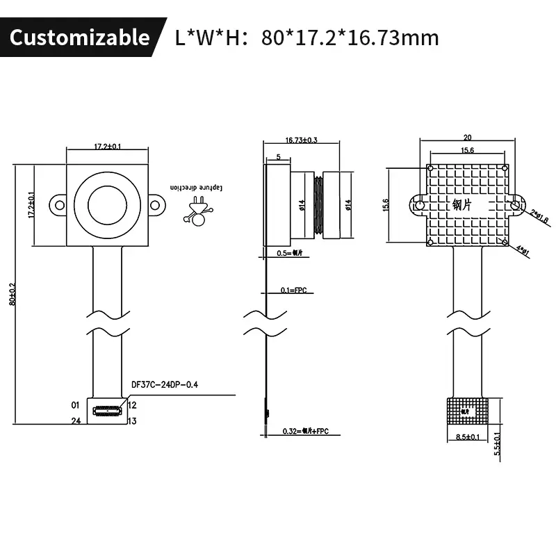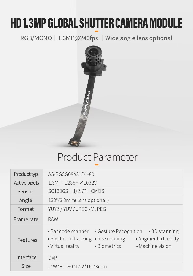 DGZX HD 1.3MP DVP 240fps Global Shutter Camera Module