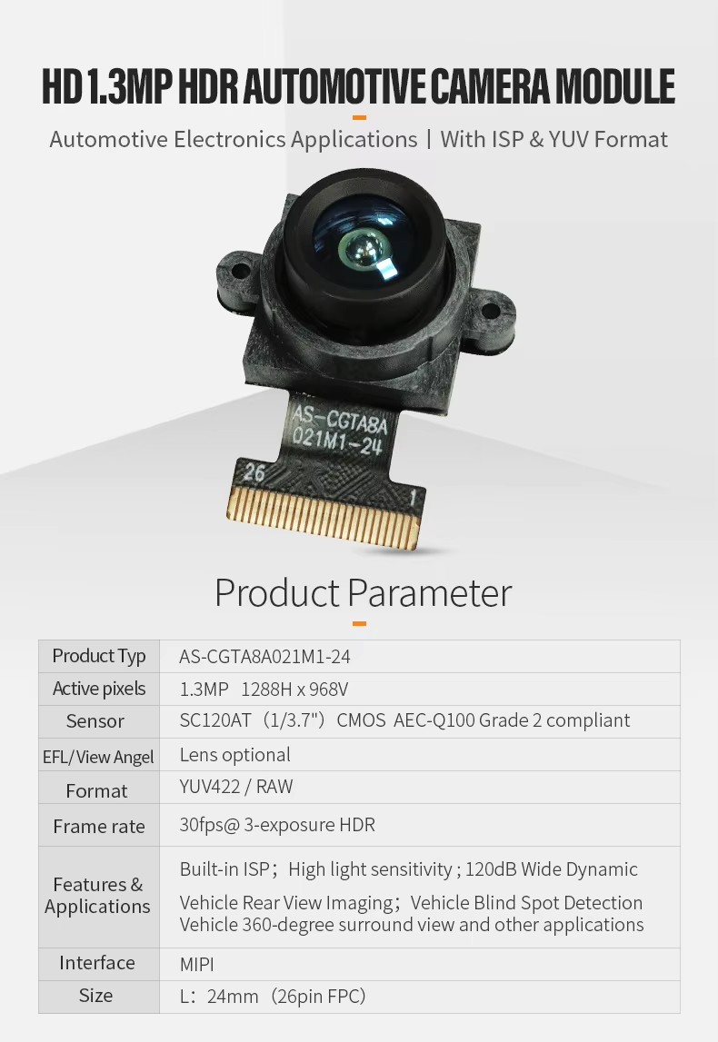 - Sensor: SC120AT(1/3.7″)CMOS AEC-Q100 Grade 2 compliant