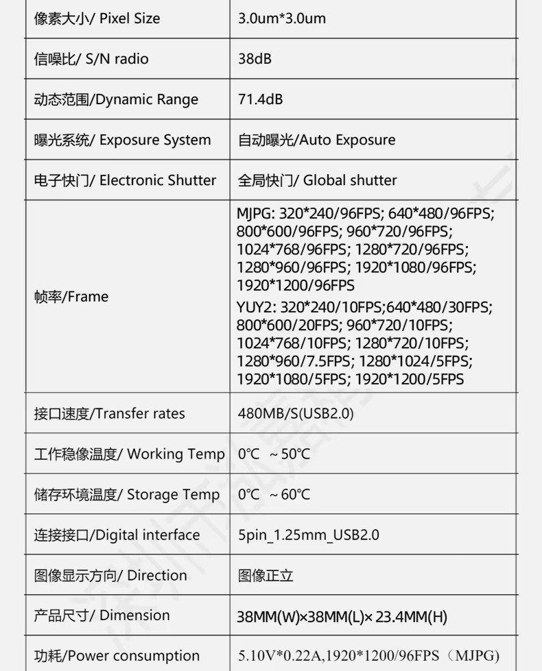 - Active pixels: 2.3Mp 1920(H)x1200 (V)