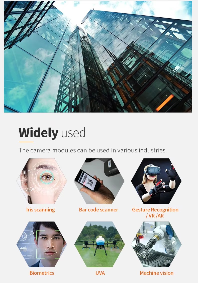 Features & Applications: It supports the UVC standard operating system, as well as features such as MlCBar code scanner, gesture recognition, positional tracking, iris scanning, AR, VR, and MR, along with machine vision/obstacle avoidance.