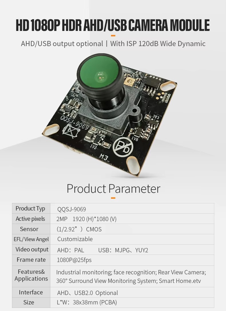 - Interface: AHD, USB2.0 Optional