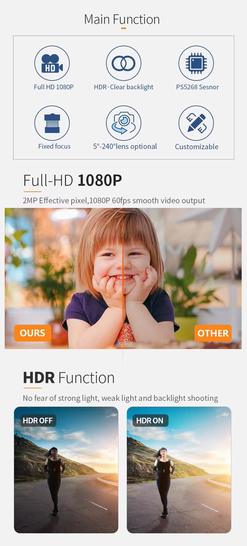 - Frame rate: 1080P: 60 fps, 1080P: HDR 30fps