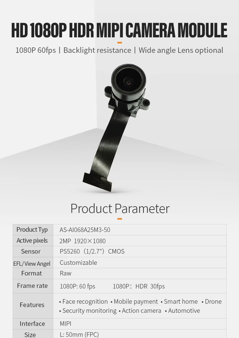 HD 1080P HDR MIPI Wide Dynamic Camera Module