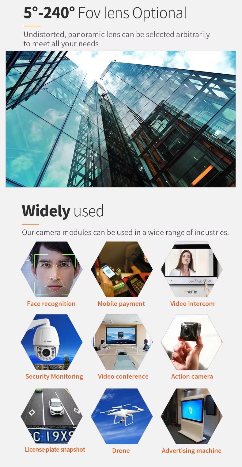 Features: Face recognition, Supervising equipment, Smart home, Video conference, Drone, License plate snapshot, Action camera, OR code barcode scanning