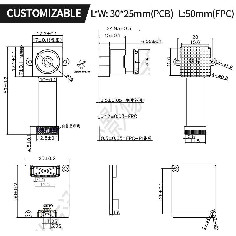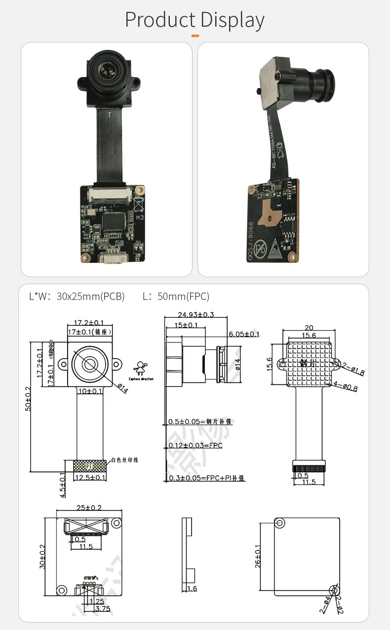 - Size: L*W:30x25mm(PCB)L:50mm(FPC)