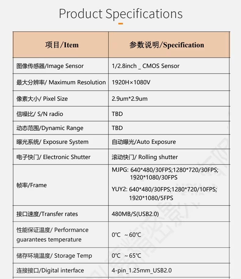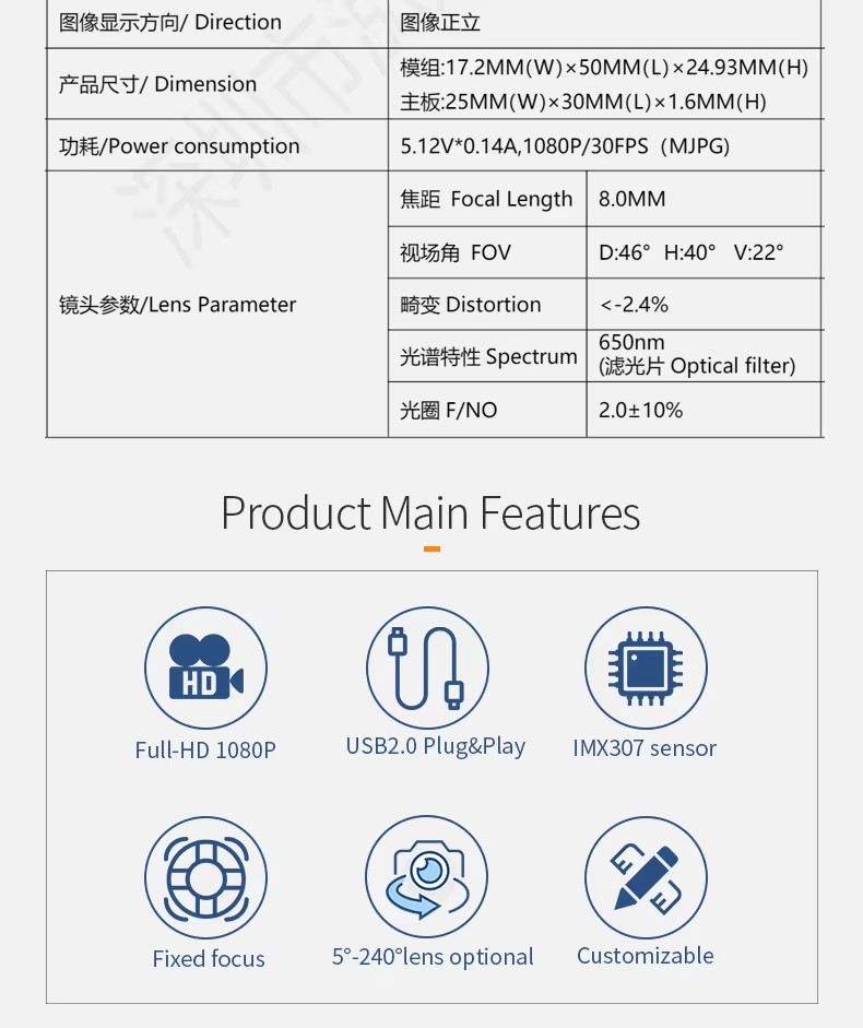 - Sensor: SonyIMX307(1/2.8″)CMOS